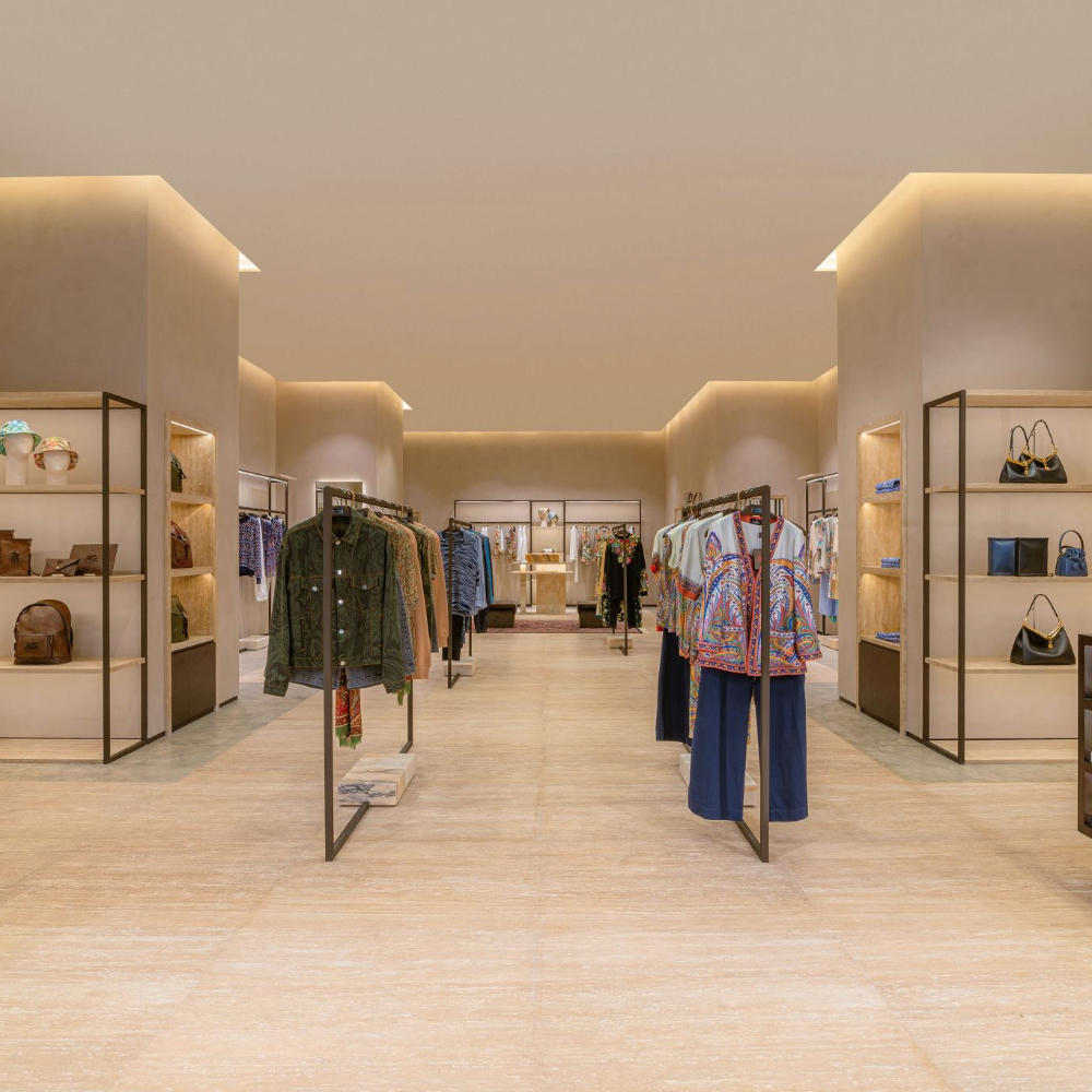 The new ETRO boutique houses women's and men's ready-to-wear and accessories collections, providing customers with a luxurious and comprehensive shopping experience.